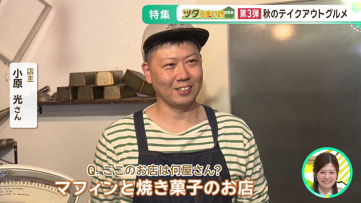 迎えてくれたのは、店主の小原光さん。こちらのお店は、マフィンと焼き菓子を専門に扱っています。店名とこのミステリアスな雰囲気について、まりもさんが「雰囲気もそれっぽくしてるんですか?」と尋ねると、小原さんは「いや、そんなことはないです。勝手にゴーストっぽくなっちゃった」と笑顔で回答。なんともユニークな店主です。