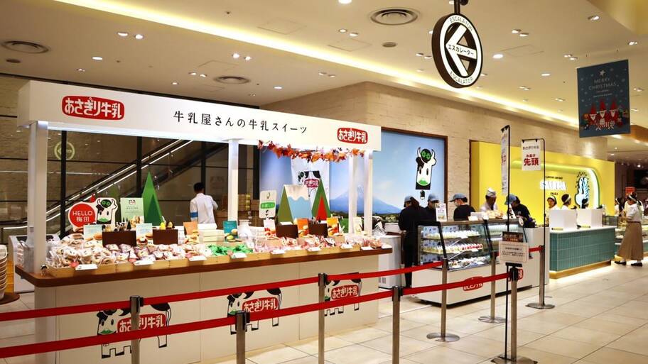 看板には「お菓子を通じてすべての人に笑顔と幸せを」の文字!