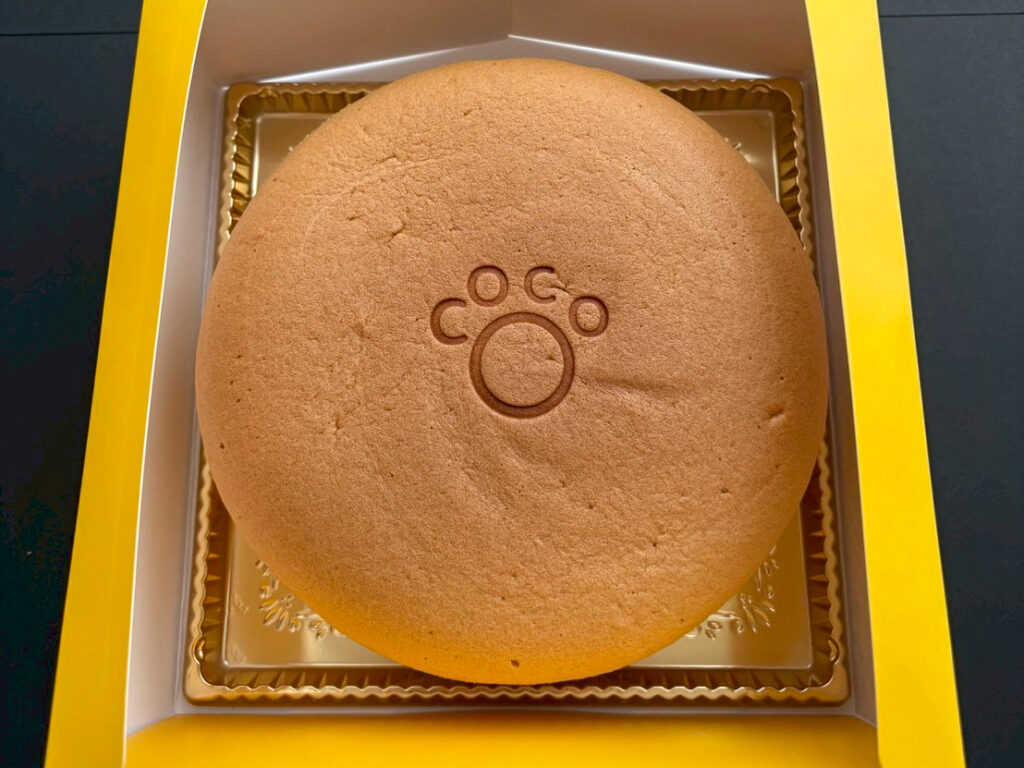 オリジナルの可愛い黄色の箱を開けると、大きな丸いスフレカステラの登場^ ^