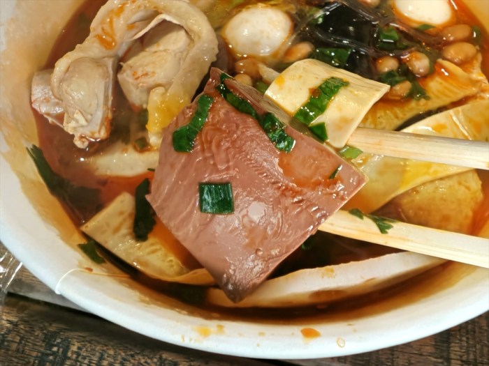 そこに湯葉や鴨血(アヒルの血を固めた伝統食材)、ホルモンなど、本格&伝統的な具材が加わり、唯一無二の旨さを生み出していた。