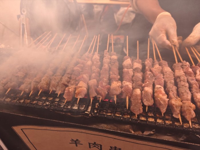 網で羊串を焼く様子はまるでライブキッチンのようで、立ちのぼる煙と美味しそうな香りに惹かれて次々と人が列に加わっていく。