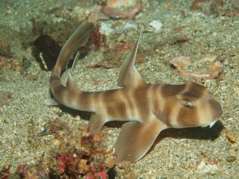 たとえば、ネコザメ。大きな目と丸みを帯びた頭が特徴で、「とぼけた顔」とも言われる愛嬌たっぷりの外見をしています。
