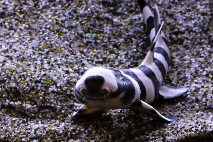 イヌザメは、黒と白の縞模様をした幼魚時代が特に特徴的。大人になると、全身が灰色がかったような色になります。岩陰に隠れてじっとしていることが多い、穏やかな性格をしています。