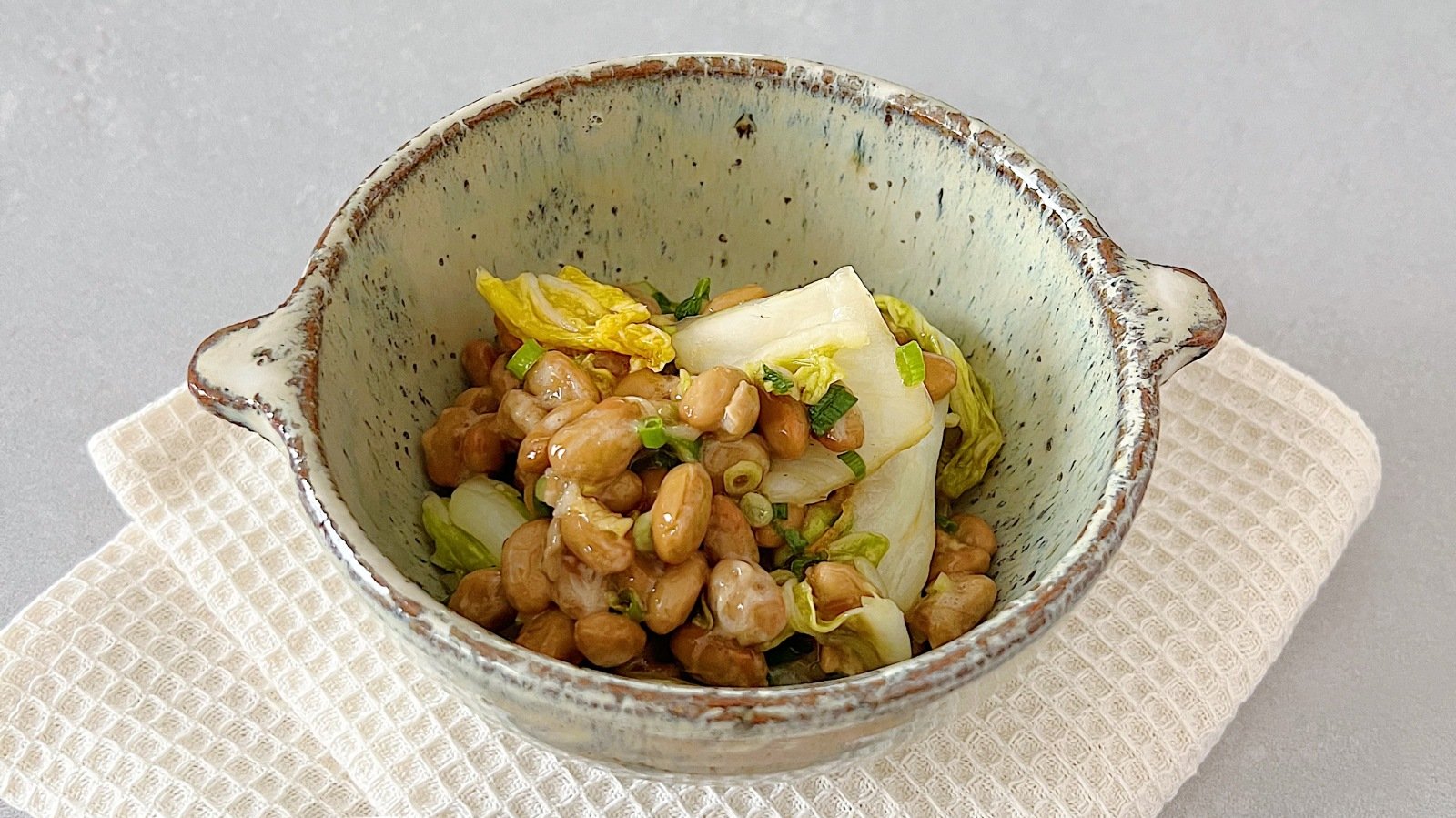 白菜の食物繊維が善玉菌のエサとなり、納豆菌が腸内環境にプラスに働いてくれることが期待できます。