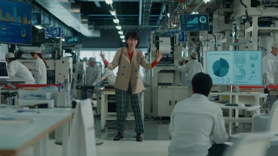 「人を想うDX」篇で松たか子さんは、NTTドコモビジネスの営業担当として、阿部サダヲさん演じる製造業の経営者のもとを訪れ、「NTTコミュニケーションズさん!」と呼ばれるところからスタートします。