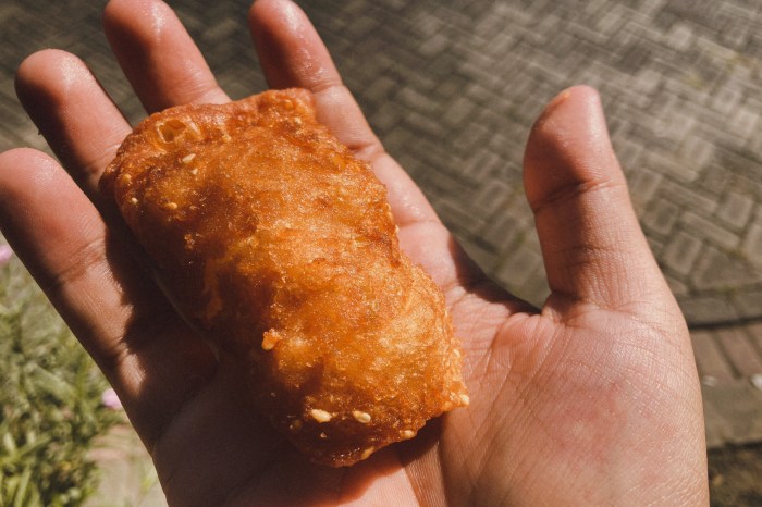 手のひらサイズで、外はカリッと中はふわふわしている。外にはゴマがまぶされており、ほんのり甘い。