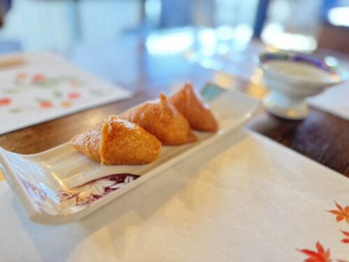 味のしゅんだ(染み込んだ)揚げで包まれたおいなりさんが3つ付いています。