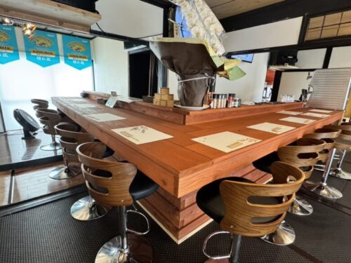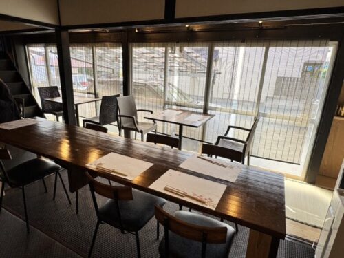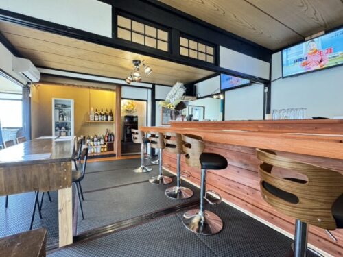 テーブル席とカウンター。 カウンター席が結構長いんです。