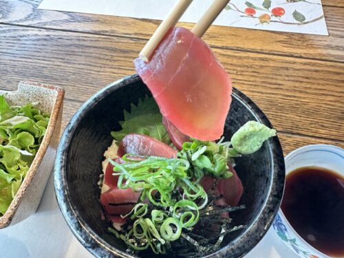 こちらがまぐろ丼。ご飯はしっかり茶碗1杯分は入ってます。その上に