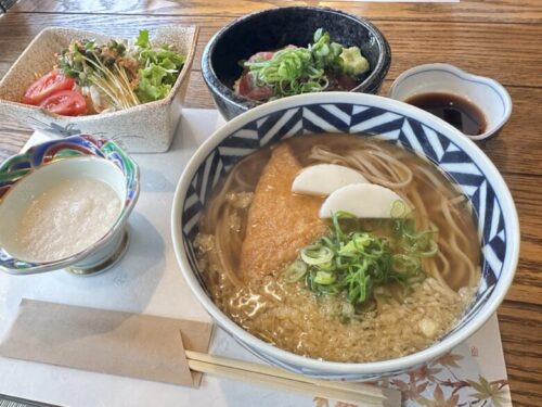 そば屋さんだけど、メニューのトップはまぐろ丼です。そばは冷or温が選べて、まぐろ丼は漬けor海鮮丼みたいなスタイルが選べます。