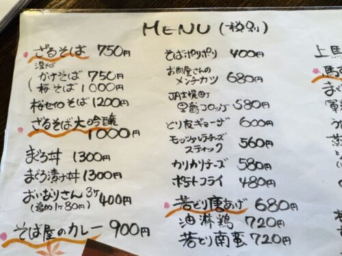 単品メニューもあります。「ざるそば大吟醸」ってなんだろう。めんつゆが日本酒なんかなぁ。 とりあえず初めてなので まぐろ丼セットとそばセットを注文しました。