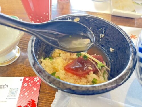 山芋入れて、山かけきつねそば完成。 やっぱ、寒い時期のあったかいそばは格別ですな。 お店を出る際に、お店の方が「沖縄そばもやろうと思ってます!」とおっしゃていました。 次の展開が楽しみな「ル・サラザン」。 そばファン&相撲ファンは足を運んでみてください。