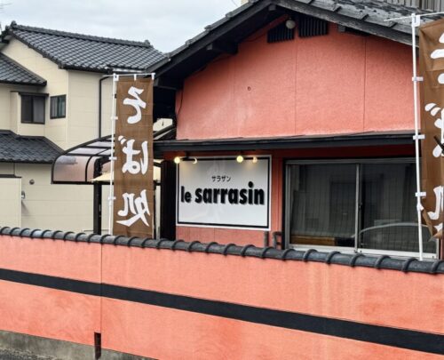 こちらが「ル・サラザン」。北バイパスの新地交番角を交番側に曲がると左手にあります。オレンジの壁が目印。