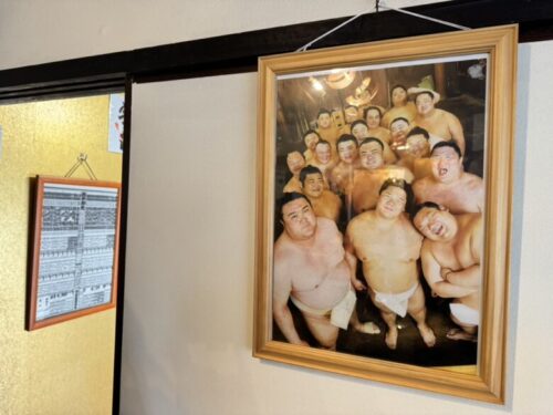 お相撲さんの写真や番付表。そういえば宇良関のサインも飾ってあったなぁ。きっと店主は相撲好きお相撲ファンの方は是非行ってみてください。