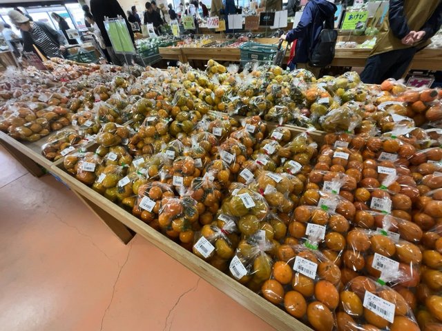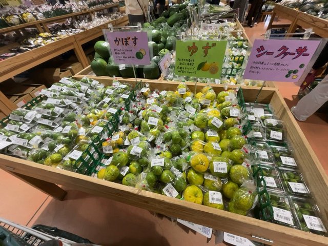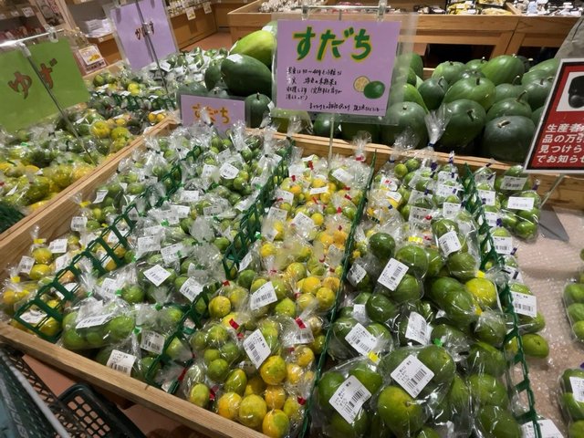 柑橘類も豊富に。すだちにおいては比較的割安なもので、一袋5~6個入り120円とか。