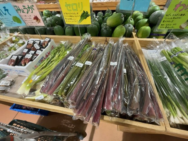 珍しい野菜では、こんな金時生姜。はじかみ生姜の根っこの部分。関東などでは葉付フレッシュで販売されてる地域もありますが、関西では比較的レア。よく冷え解消成分として語られるジンゲロールにおいては、通常の生姜の4倍含まれるとか。