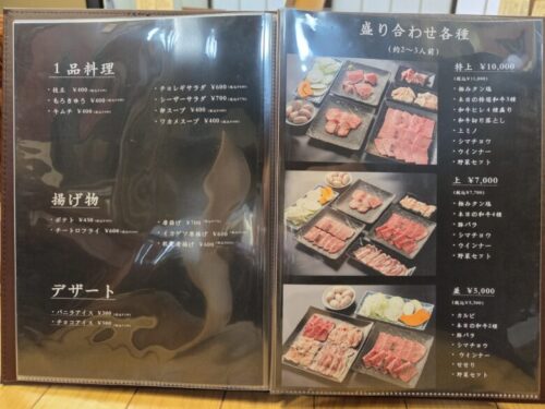 無煙ロースターの仕組みが分かったので、早速肉を焼いてみましょう! メニューがこちら。