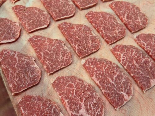 部位ごとに一番美味しく食べられる大きさに、今泉さんご自身の手で切り分けてくれるので、どの部位も美味しく食べられます!すべての肉を手切り…こだわりがすごい!