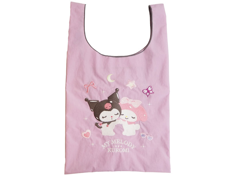 ショッピングバッグや巾着、ミニスクエアポーチは、マイメロディとクロミを刺繍で表現しています。