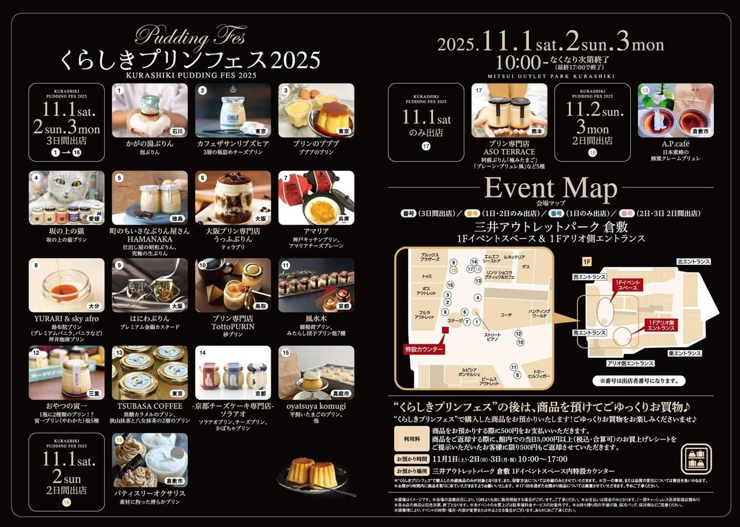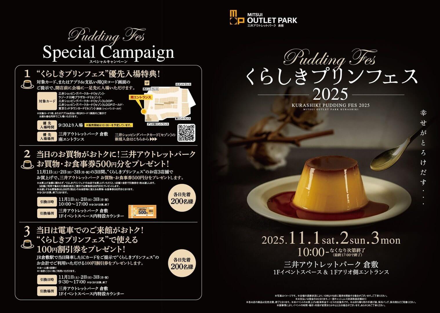 【11/1~3】三井アウトレットパーク 倉敷で「くらしきプリンフェス2025」開催。岡山県内外18店舗のプリンが集まるしあわせなイベント