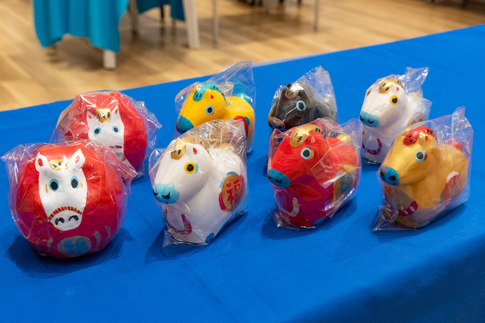 《画像:来年のえと「午」にちなんた馬の貯金箱や「午年だるま」》