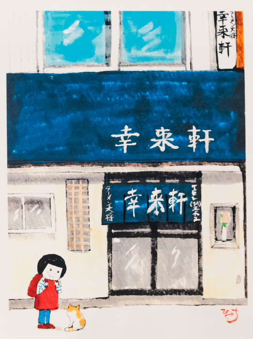 カレンダーは毎年恒例で、今年は「直江津」「高田」「あの店この店」「ラーメン」「くるみぼーる(長野市飯綱高原の洋菓子店)」など7種類。閉店した店舗はひぐちさんや友人知人の記憶、古い写真などを参考に、ひぐちさんならではのほのぼのとしたタッチで描いた。