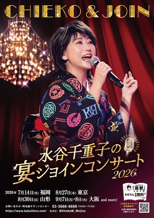 2026年もめでたく芸能生活50周年の節目を迎える水谷千重子のコンサートツアー『水谷千重子の宴ジョインコンサート』が2026年7月福岡、8月東京・山形、9月大阪にて開催されることが決定した。