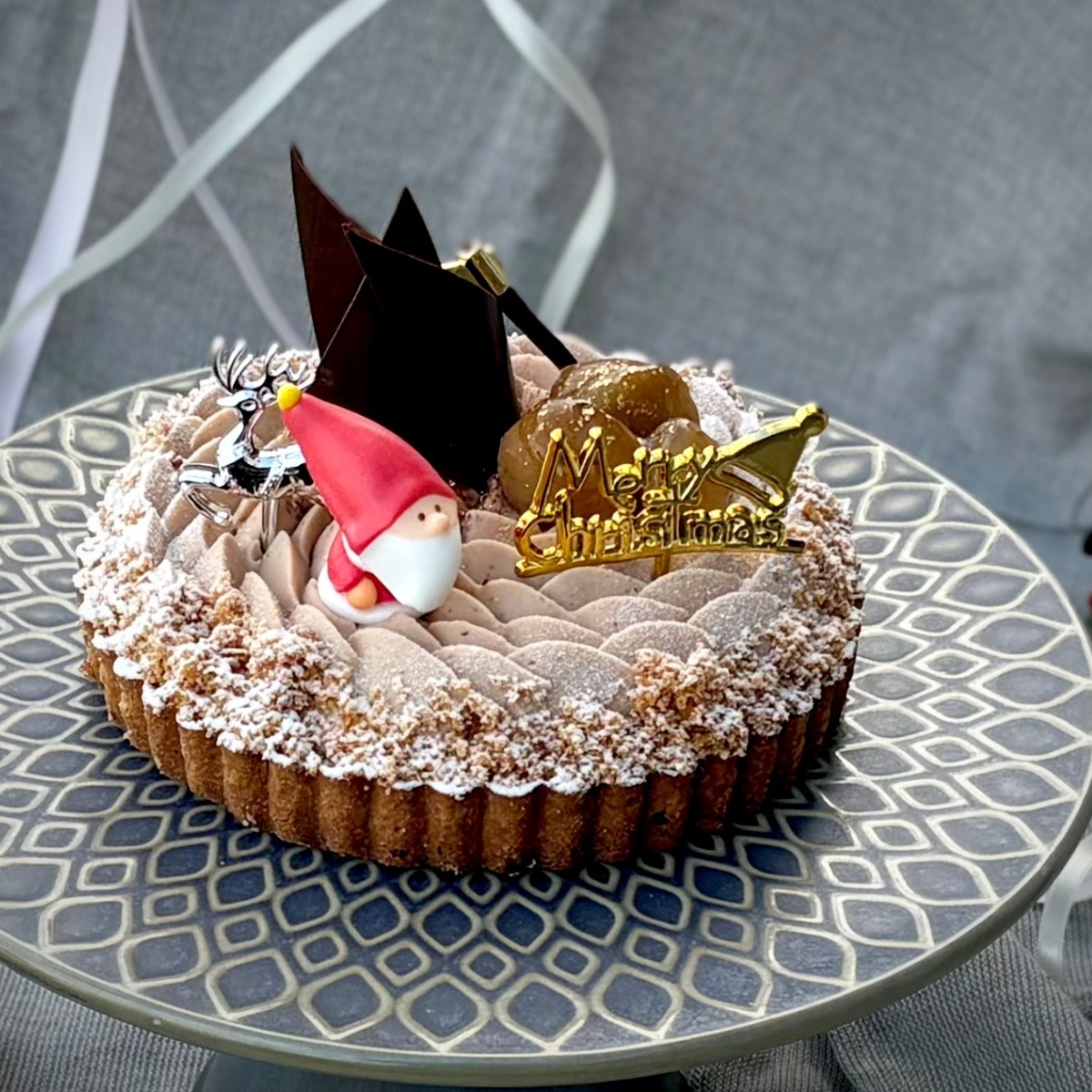 刻み栗をたっぷり練りこんだサクサクの自家製タルトに刻み栗と生クリーム、マロンクリームで仕上げ。