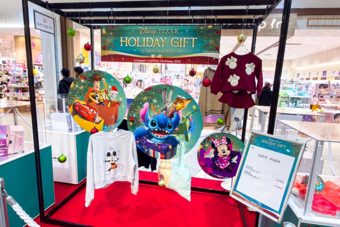 館内のショップでは、ディズニーデザインのアイテム販売をはじめ、無料で参加できる「スティッチを探そう!ホリデーカードコレクション」や「フォトスポット」など、大人も子どもも楽しめる企画がそろっています。