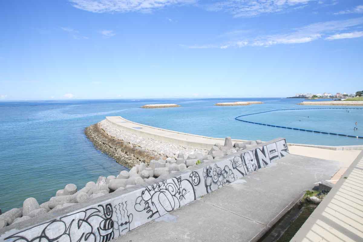 都会のなかにありながら、海の透明度が高く、小さな魚やカニなどを見ることもできます。