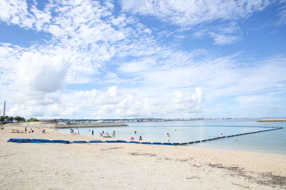 遊泳区域内にはネットが張られており、また波が穏やかなので、小さなお子さま連れのファミリーでもあんしんして海水浴を楽しめます。 ただ、この日は水がたっぷりだったからか、遊泳区域の中腹あたりはお子さまにはちょっと深いように感じました。 ビーチにはライフガードがいますが、念のため、お子さまを海で遊ばせるときは浮き輪やアームリング、ライフジャケットなどの使用をおすすめします。