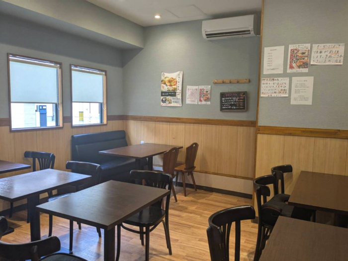 店内は2人・4人掛けのテーブル席があり、窓から日の光が差し込み明るく落ち着いた空間となっています。