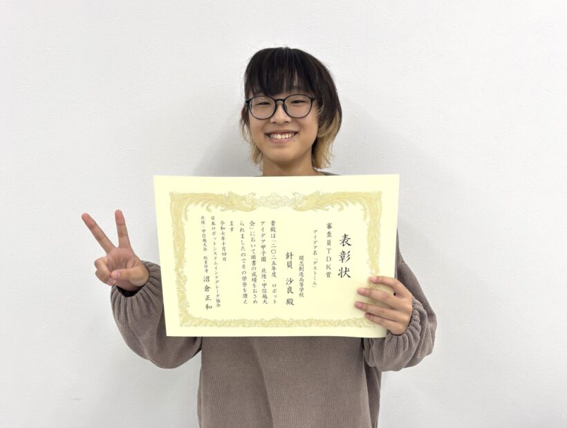 開志創造高等学校(新潟市中央区)1年生の針貝沙良さんが11月26日、「ロボットアイデア甲子園2025」の甲信越大会で審査員特別賞を受賞した。