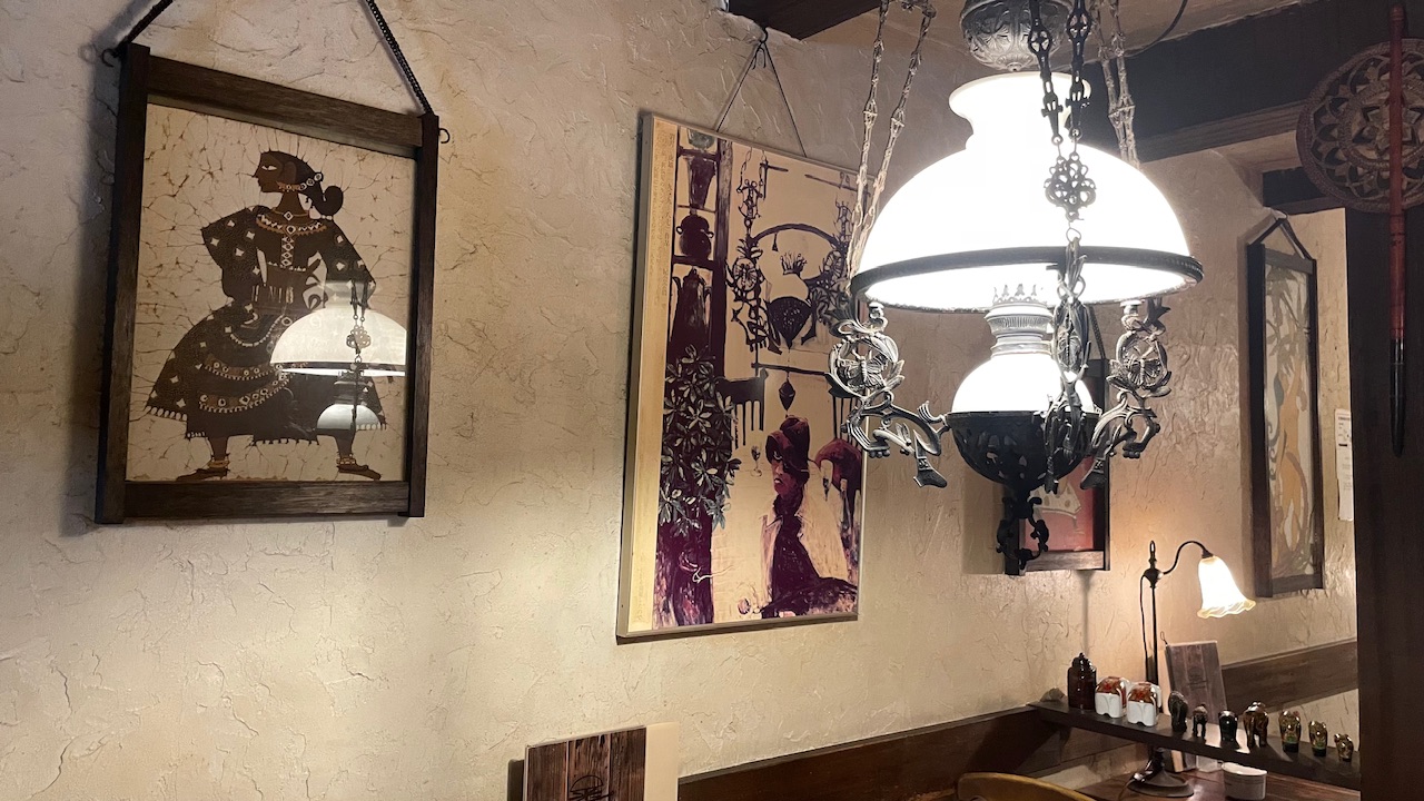 よくあるインド料理店より派手さがなく、店内にはインドの装飾品や写真が並びながらも、全体の色味は落ち着いていて上品。