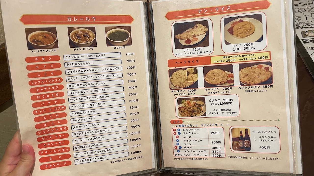 カレーやビリヤニのセットは1,000円以下と、想像より一般庶民に嬉しい価格に驚きました。