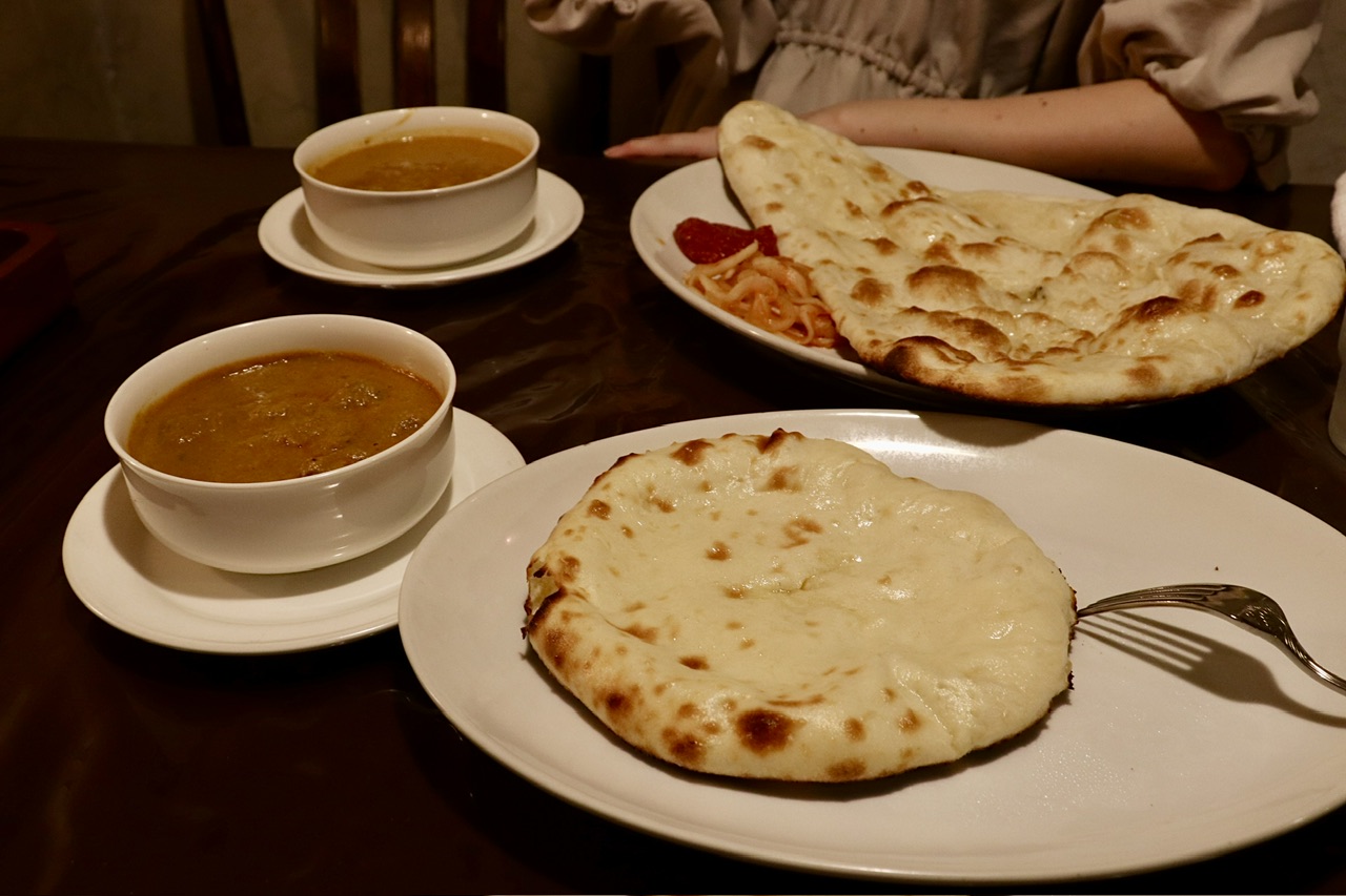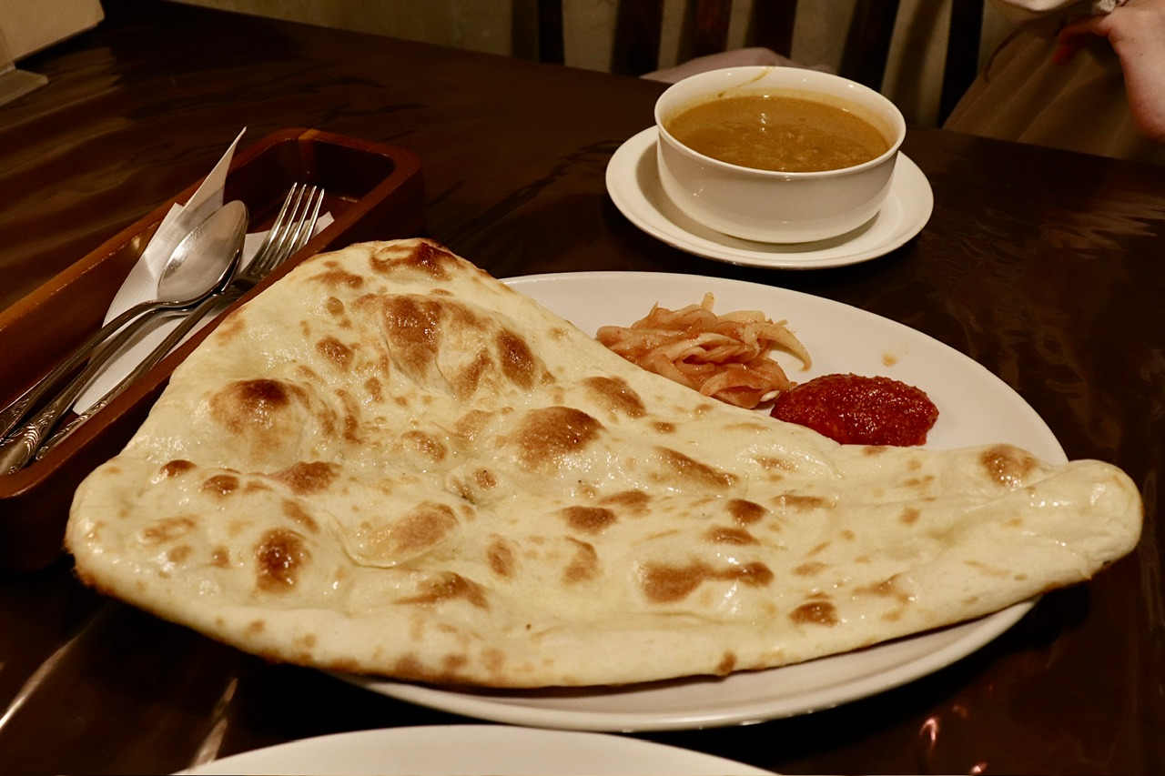 唐辛子の旨みをしっかり感じます。プレーンナンはふっくらモチモチ食感でした。