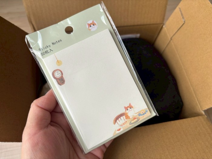 メッセージや自分用のメモなど使い勝手が良さそうな大きさだ。裏を見ると中国語……だが、使用には問題なし。