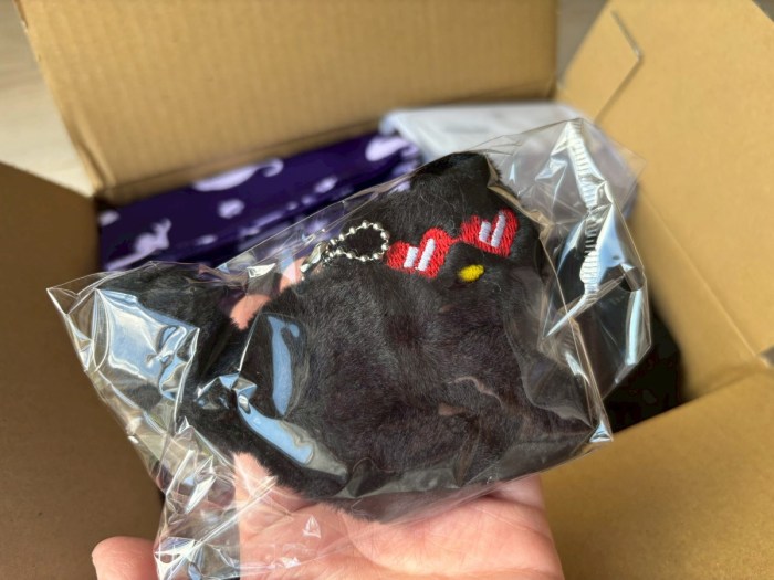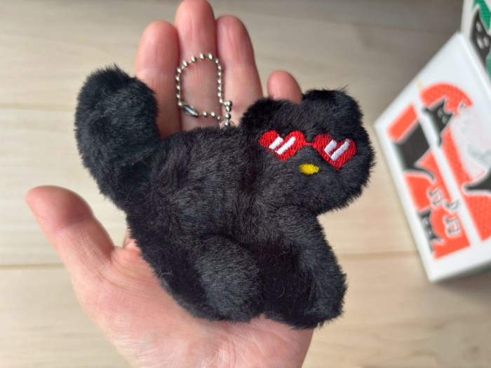次に手に取ったのは、ハート型サングラスの黒猫キーホルダー。