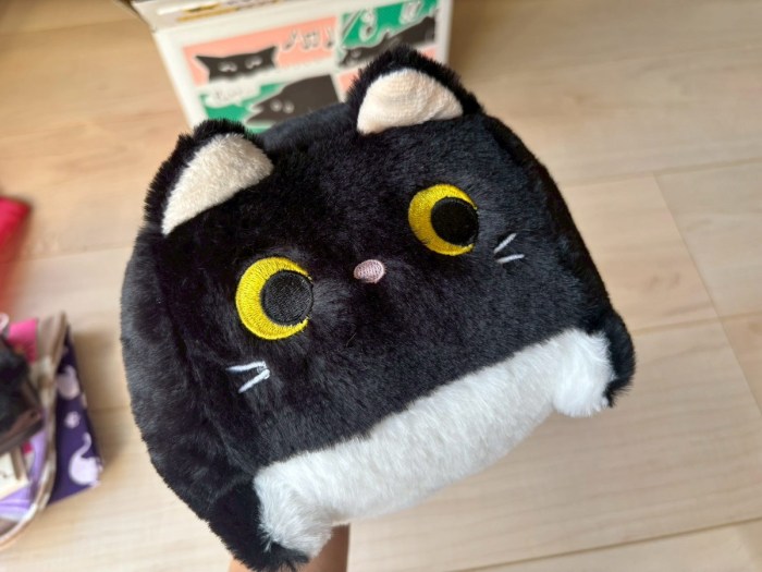 四角いフォルムが何とも愛らしい。触ってみると、ふわふわで抱き心地が良い。インテリアとしても良さそうだし、添い寝しても気持ちよさそうだ。