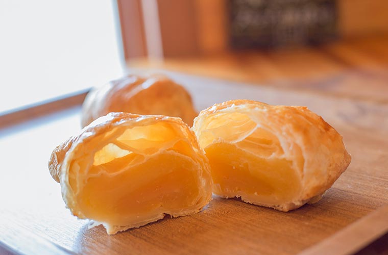 数あるパンの中でも人気No.1は、月2回限定販売の『贅沢マロンパイ』。大粒の栗が丸ごと入った名前の通り贅沢な一品です。サクサクのパイ生地と、甘くなめらかなマロンクリームのハーモニーがたまらないお値段以上の上質スイーツ。早々に品薄になることも多いので、確実に手に入れたい人は、電話での取り置きがオススメです。販売日は、公式Instagramをチェックして。