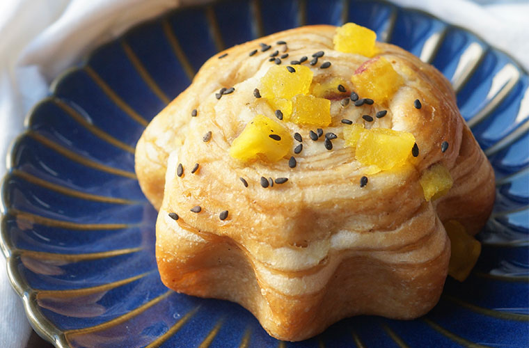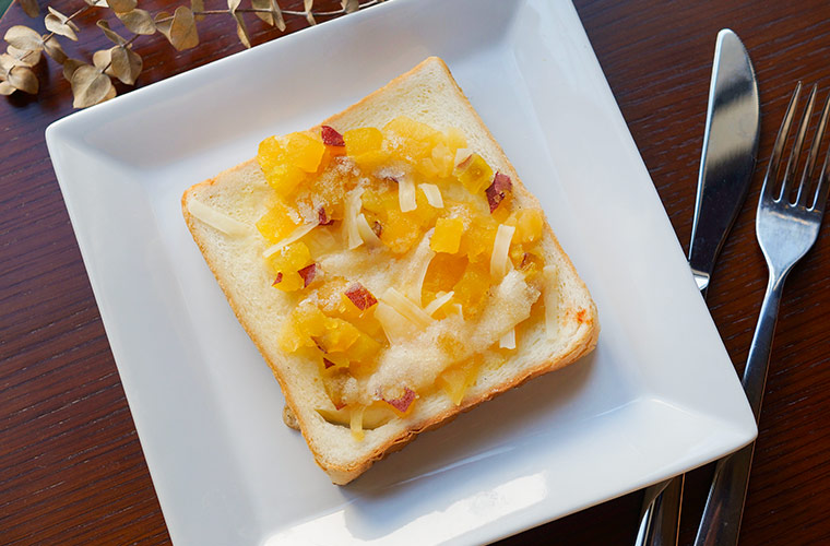 季節ごとに登場する限定パンも見逃せません。秋には、『トーストパン』に旬のリンゴとサツマイモをふんだんにのせた『秋のスイーツトースト』がお目見え。シュガーとメープルシロップの甘い香りが広がる、甘党にはたまらないスイーツパンです。リンゴの果肉感やサツマイモのホクホク感、砂糖のジャリっと感、さまざまな食感や味わいが楽しく、コーヒーや紅茶と一緒に味わえば、至福のひと時を堪能できます。