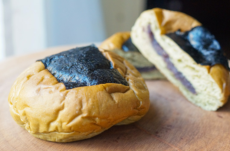 魅力あふれるスイーツパンも豊富にスタンバイ。中でも注目は、地元・明石の食材を生かした『明石のりのりあんぱん』。明石市や明石産品の認知度向上を目指した取り組みである「明石市チャレンジ・スタートアップ事業者支援補助金」に、同店が採択されたことにより誕生した地産地消パンです。生地には海苔パウダーを練り込み、上には味海苔を1枚トッピング。どちらも「明石のり」で有名な「鍵庄」の商品を使用していて、香り豊かな海苔の風味を存分に堪能できる仕上がりに。海苔とあんこの組み合わせは、意外にも相性抜群。甘じょっぱいハーモニーがクセになります。