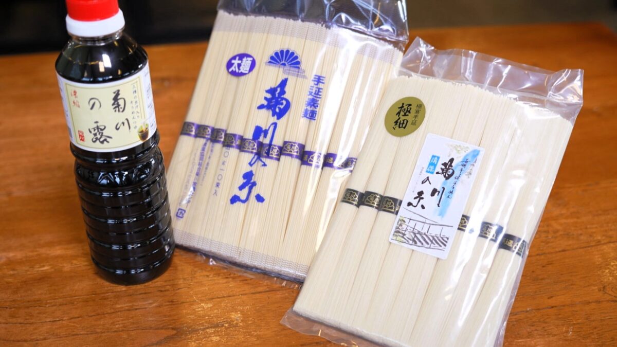 ほんのり甘めで、すっきりさっぱりとした「菊川のつゆ」に、お好みでワサビをちょっと乗せれば、ピリッとしたアクセントが加わり、さらに食が進みますよ。毎年「冷やし素麺を待ってました!」というファンが多いというのも納得の逸品です。