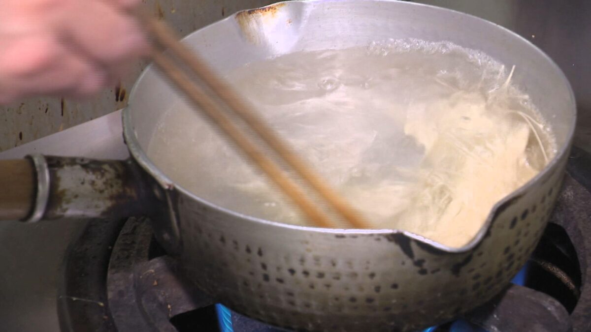 しかし、このそうめんの真髄は食感にあります。ただ細いだけではなく、噛みしめると「しっかり芯がある」強烈なコシが特徴。「よもやま」の料理長の河上さんによれば、このコシを生む秘訣は、麺が透けきる前に引き上げ、すぐに氷水で締めるという絶妙な湯がき加減。