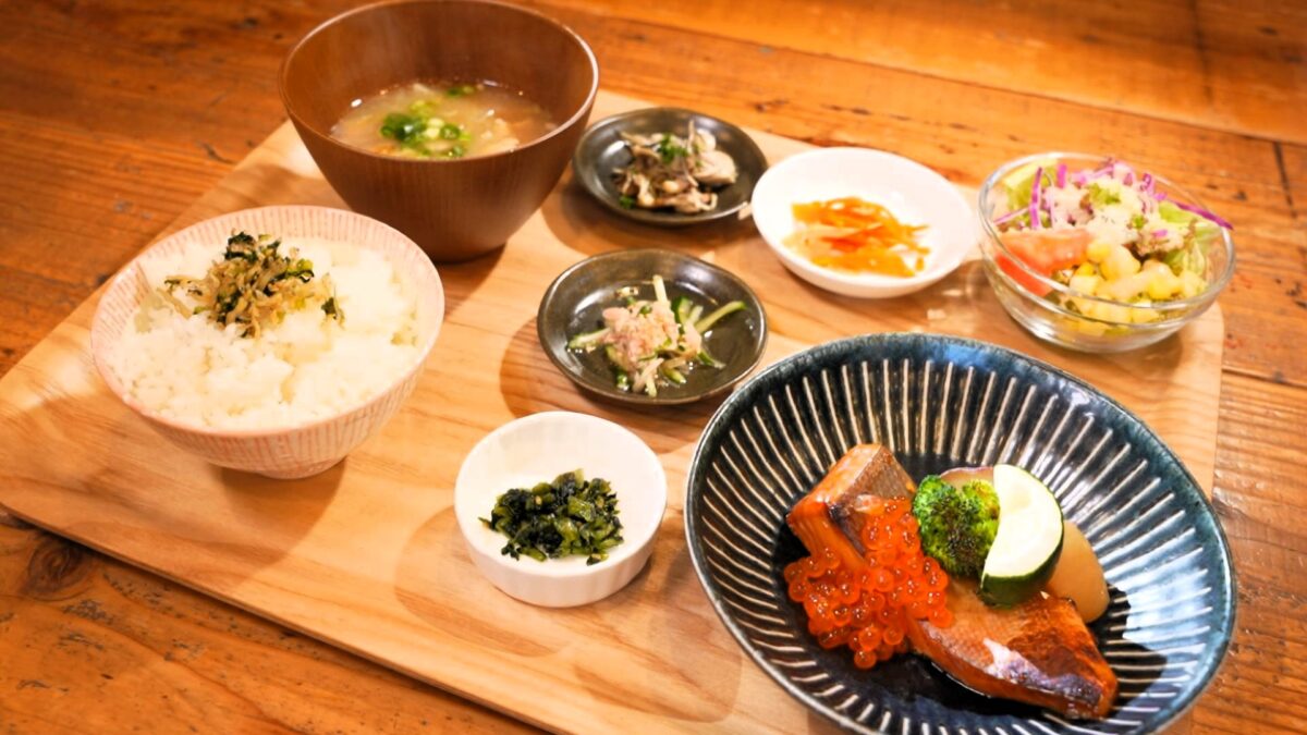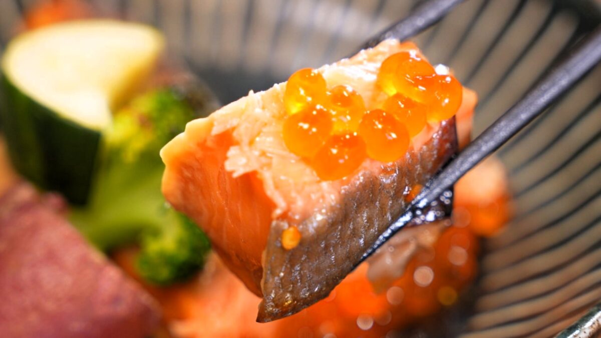 まずご紹介するのは、「定食堂なか」で味わえるイクラとサーモンの幽庵焼き定食です。