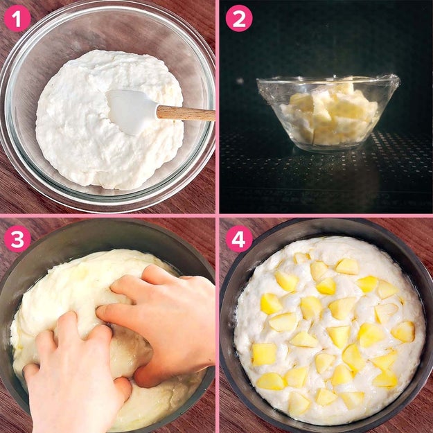 ④ ③の上に②をのせる。200℃に予熱したオーブンで20分焼く。お好みで粉砂糖をかけたら、完成!