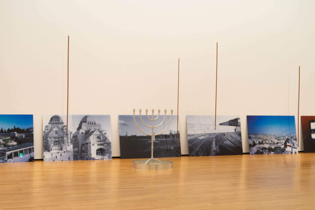 横に6枚並んだ写真に描かれているのは、ベルリンの壁、アメリカ同時多発テロのニュース(9.11)、イスラエルの街並みなど、人間が築いたものの崩壊や、争いの痕跡を思わせる風景ばかりです。