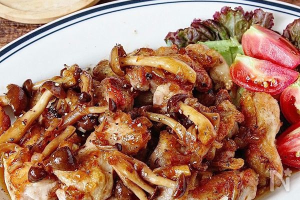王道の醤油ベースでご飯に合う!きのこと玉ねぎの和風ソースチキン