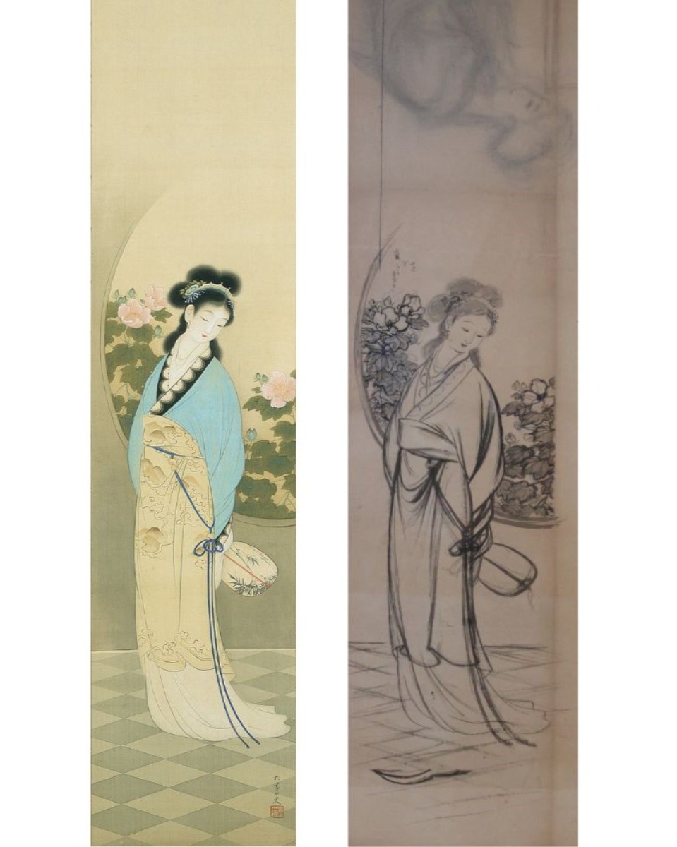 松伯美術館では開館当初より、松園の下絵や素描を多数収蔵してきたが、この記念の年に、そのコレクションに加わる新発見の下絵が初めて一般公開される。