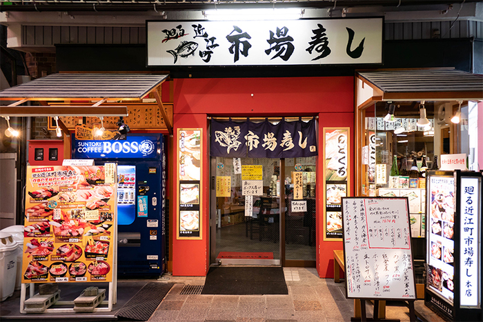 にぎやかな市場の空気をそのまま感じられる活気あふれる寿司店「廻る近江町市場寿し 本店」。